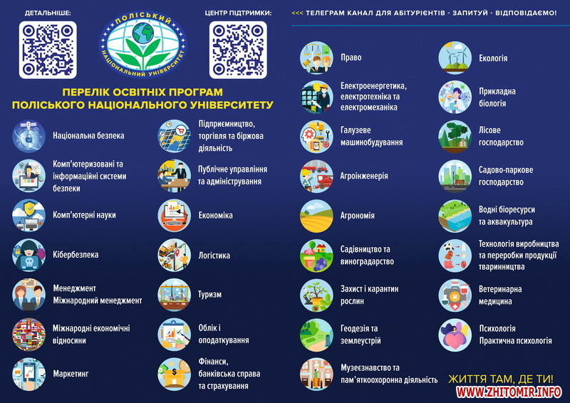Нагадаємо, що Поліський національний університет вперше в Україні за погодженням з Міністерством економіки України, Міністерством захисту довкілля та природних ресурсів України, Міністерством аграрної політики та продовольства України, Міністерством освіти і науки України розпочинає підготовку бакалаврів з національної безпеки за напрямами економічної, екологічної та продовольчої безпеки. Також університет розпочинає підготовку фахівців за освітньою програмою «Комп’ютеризовані та інформаційні системи безпеки».