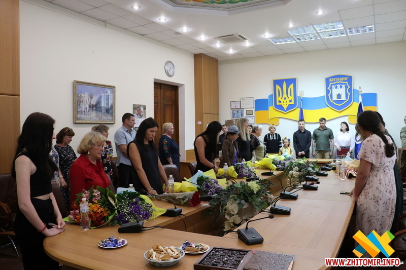 «Родинам чотирьох загиблих захисників передали державні та відомчі нагороди. На церемонію прийшли й представники житомирських навчальних закладів, у яких навчалися та здобували освіту Герої», - йдеться в повідомленні.