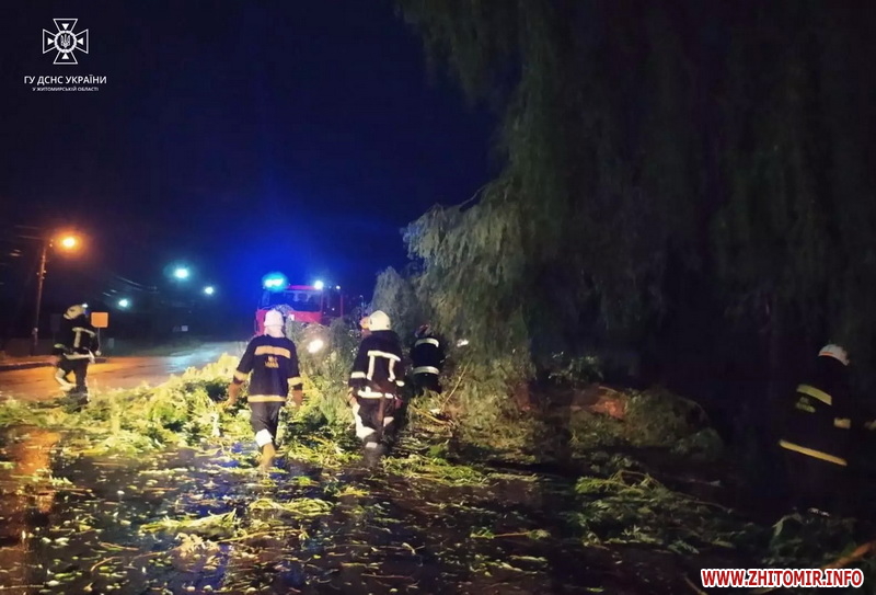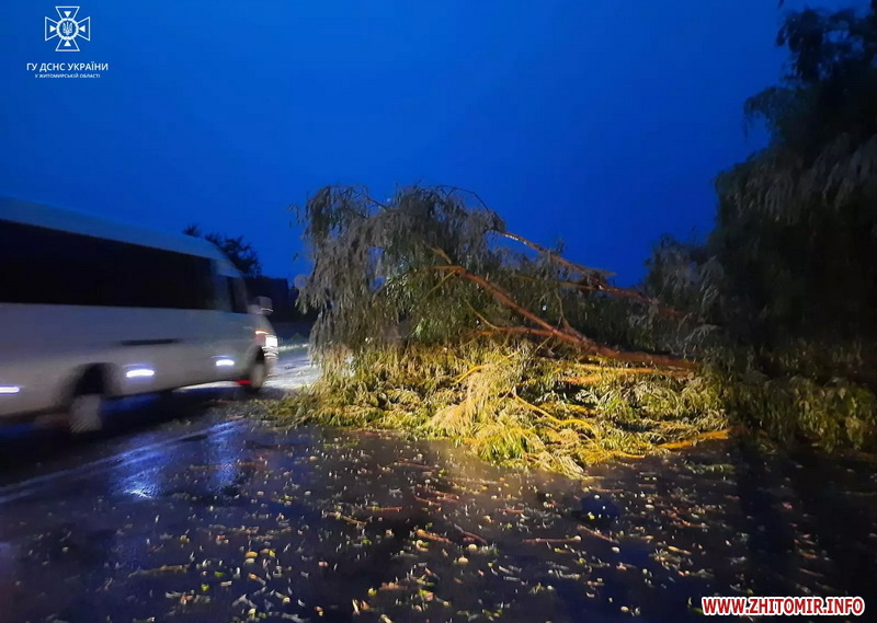 Упродовж доби через негоду в Бердичівському, Житомирському та Коростенському районах без електропостачання залишився 81 населений пункт. Крім того, на автошляхах рятувальники прибирали 14 дерев, які впали через сильний вітер.