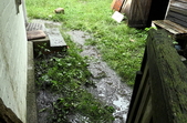 «Вчора йшов буквально 40 хвилин сильний дощ і по фундамент вода стояла і не було їй куди уходити. Вода стоїть, ями кругом. З усіх сторін сюди стікається вода, бо тут низовина», - бідкається місцевий мешканець будинку Олександр Каневський.
