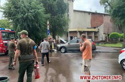 Біля Житомирської обласної військової адміністрації 11 липня близько 16 години загорілася автівка, на місці події є рятувальники.