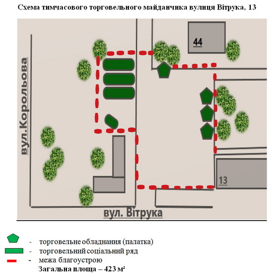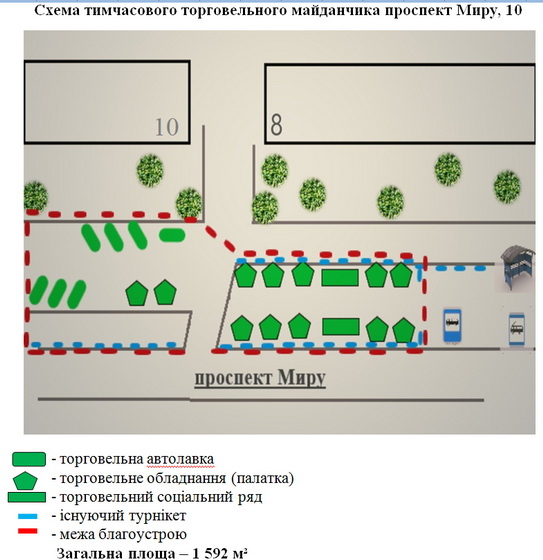 У додатках є схеми тимчасових торговельних майданчиків за трьома адресами: