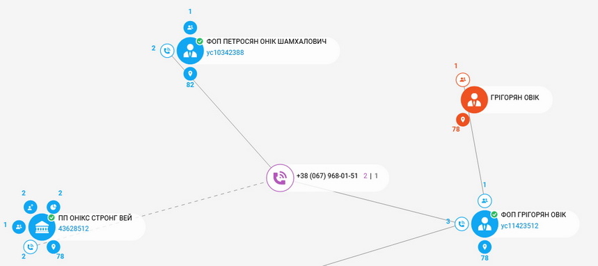 Онік Петросян, Овік Григорян і фірма Людмили Біденко зареєстровані в одному й тому ж будинку на вул.Перемоги у Житомирі. Крім того, за даними аналітичного порталу YouControl, ФОП Григорян Овік, ФОП Петросян Онік Шамхалович та ПП «Онікс Строгн Вей» пов’язані між собою, бо при реєстрації вказали один і той самий номер телефону. Сумарно ці три підрядники вже отримали від управління міської ради договори на майже 5 млн грн.