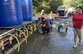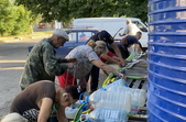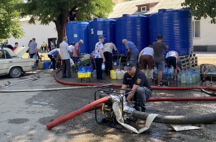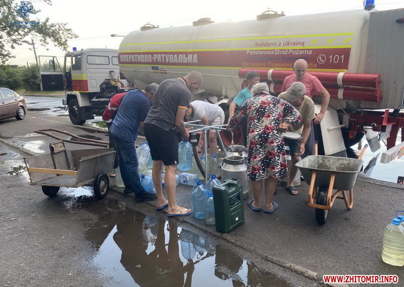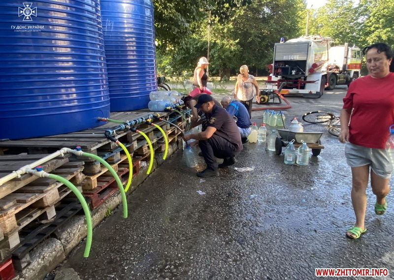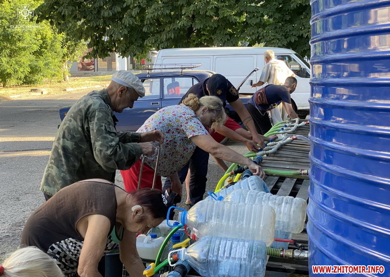 «Наші рятувальники від раннього ранку до пізнього вечора підвозять людям технічну воду. Автівка, яка може вивезти 18 т води, щодня курсує від водосховища до трьох різних точок Нікополя. Завдання різні - інколи хлопці працюють безпосередньо на роздачі води, інколи заливають в бочки для загального користування. Загалом вдається надати людям близько 130 м³ води за добу. Та, окрім такої бажаної водички, юні нікопольці не втрачають можливості поспілкуватися з рятувальниками Житомирщини, посидіти за кермом спецавтівки і пофоткатися», - йдеться в повідомленні.