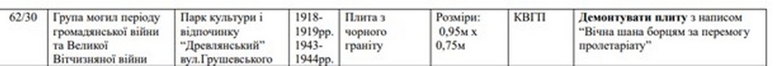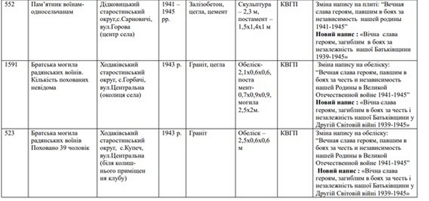 На сайті опублікований перелік пам’ятників та пам’ятних знаків з символікою російської імперської політики, які підлягають демонтажу та вилученню з публічного простору Коростенської громади. Однак фактично на усіх перелічених у додатку пам’ятниках перекладуть написи з російської на українську мову.