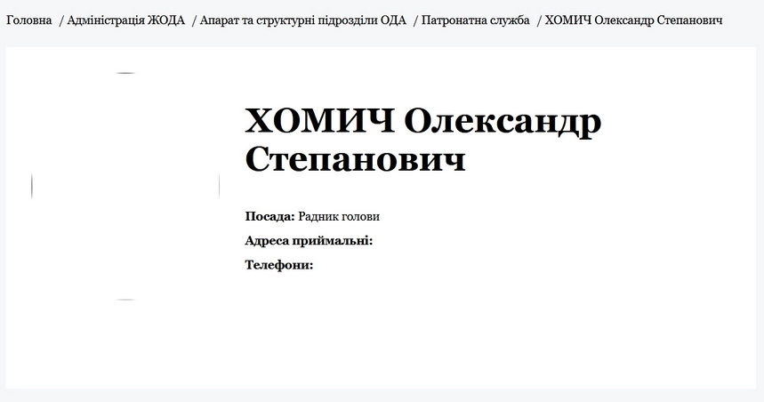 Звільнений за неналежний стан укриттів голова Житомирської райдержадміністрації Олександр Хомич відтепер працює в патронатній службі начальника обласної військової адміністрації.