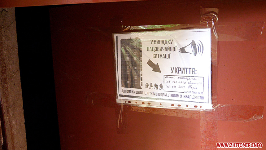 «Перше, на що можуть бути виділені кошти – це електромеханічний замок, який під час повітряної тривоги ці двері відчинить. По-друге, обстежено 286 укриттів, 145 будинків. В більшості, 98%, укриття потребують заміни дверей. Є вже укладено 20 договорів і двері замовляються, замки теж. Друге – це те, що стосується внутрішніх мереж наших укриттів. Комунікації десь зношені, десь мінялись, тому є можливість зробити поточний ремонт аварійних ділянок. Третє – освітлення», - роз’яснює начальник управління житлового господарства Житомирської міської ради Андрій Гуменюк.
