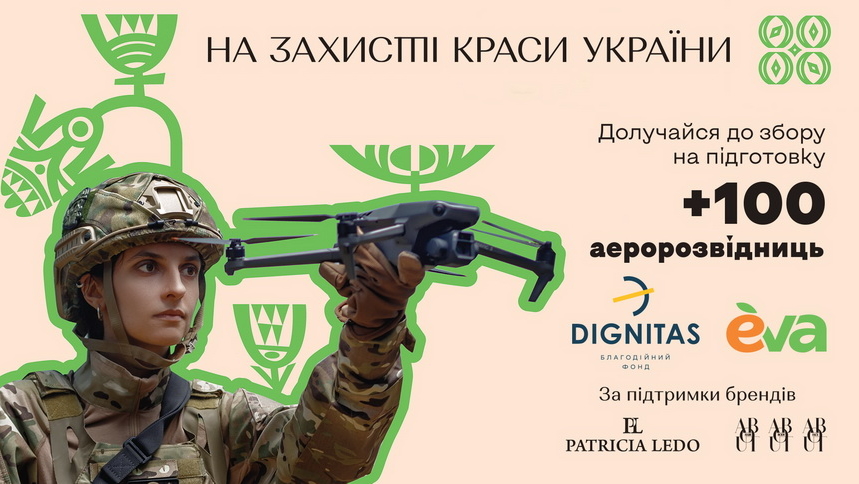 Тому лінія магазинів EVA разом із фондом «Дігнітас» розпочинає проєкт «На захисті краси України». Його мета – зібрати 8 000 000 гривень на навчання та забезпечення дронами й необхідним устаткуванням 100 аеророзвідниць Збройних Сил України.