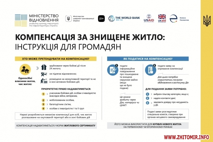 Як повідомляв Житомир.info, 10 лютого 2023 року міська влада інформувала, що Житомир візьме участь у програмі «ВідновиДім», кошти на реалізацію якої виділяє Європейський Союз: долучитись до програми зможуть пошкоджені внаслідок ворожих атак ОСББ міста, йдеться не про вщент зруйновані будинки, а ті, в яких вціліли несучі конструкції.