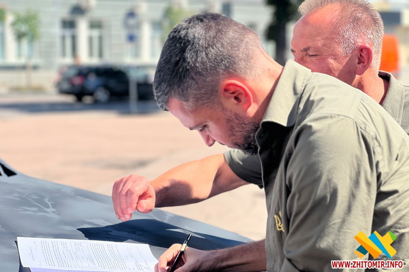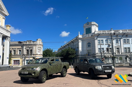 Житомирським військовим передали два позашляховики та дрон, придбані за зібрані на аукціоні кошти.