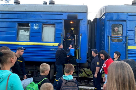 1 липня у Бердичеві рятувальники зустріли потяг з 16-ма евакуйованими мешканцями Донеччини, серед яких 10 дітей.