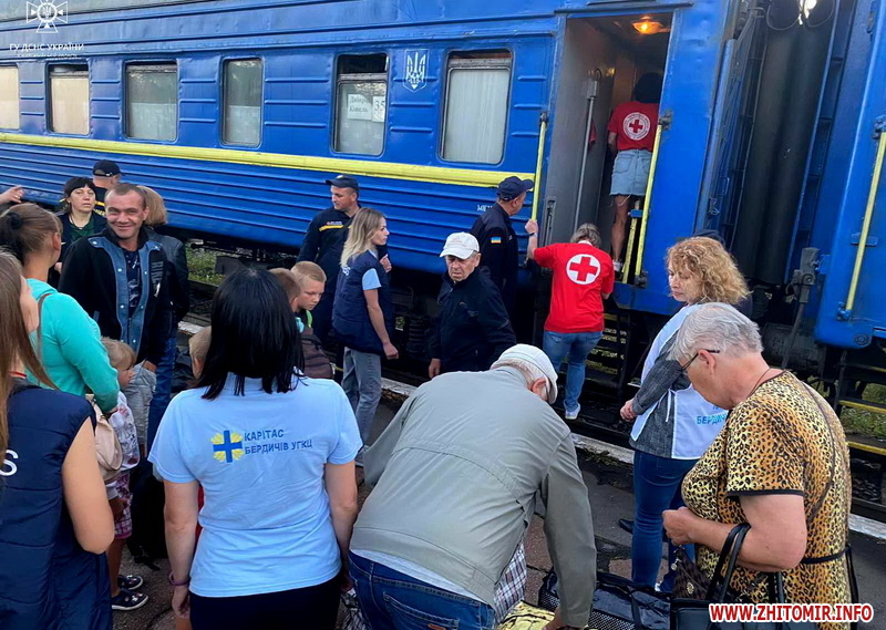 «3 серпня до м. Бердичів прибув черговий потяг з евакуйованими особами із Донеччини. Цього разу приїхало 23 чоловіка, серед яких 5 дітей та 3 особи з інвалідністю. Рятувальники, поліцейські, волонтери та представники місцевої адміністрації зустріли людей біля потягу, допомогли їм перенести валізи з речами до зали очікування. Люди змогли відпочити після поїздки, отримати необхідну консультацію та грошову допомогу від держави. Шістнадцять внутрішньо переміщених осіб відправлені до зазделегідь визначених місць поселення на території Звягельського району, ще сім осіб виявили бажання відправитись на самопоселення», - йдеться в повідомленні.