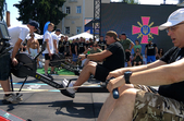 «Представлено сьогодні чотири адаптивних види спорту. Стрільба з лука на локації як ознайомчий вид, тому що місцерозташування, на жаль, нам не дозволяє зробити повноцінні змагання. Потім є аеробайки, веслування на концепті та жим лежачи на кількість разів», – розповідає почесний президент Федерації стронгмену України Василь Вірастюк.