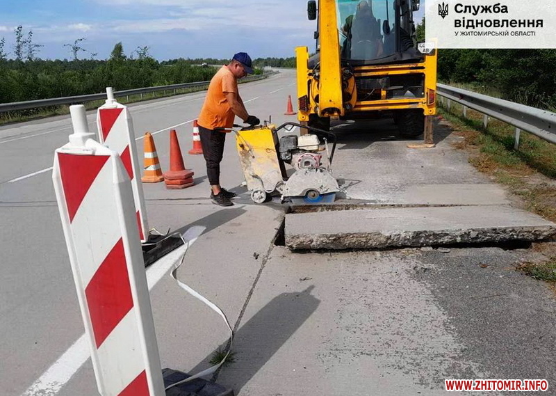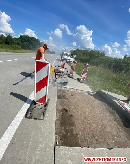 Проведено аварійний ремонт бетонних плит на магістралі М-07 Київ – Ковель – Ягодин, що поблизу автозаправної станції перед Коростенем.