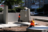«Хочемо сьогодні завершити роботи по монтажу. На даному етапі викладена підлога, зводяться стіни, також плануємо накрити кришкою. Плануємо виконати роботи на сквері Покровська, 131. Якщо сьогодні вкладемося у терміни монтажу, то завтра будуть роботи по затиранню та інші допоміжні роботи», - сказав Олександр Волокіта.