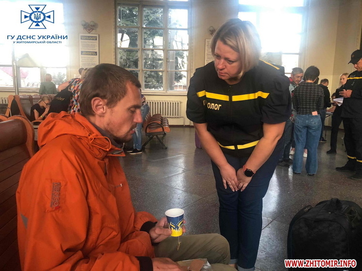 «Сьогодні до м. Бердичів прибув черговий евакуаційний потяг із 10 евакуйованими мешканцями Донеччини, серед яких двоє дітей та одна особа з інвалідністю. Всі ці люди приїхали до Житомирської області, шукаючи порятунку. До зустрічі потягу долучилися рятувальники, представники органів влади, поліцейські, представники благодійної організації «Карітас України» та Товариства Червоного Хреста України. В приміщенні залу очікування люди змогли трохи відпочити після поїздки та отримати грошову допомогу від держави. Кожен бажаючий зміг підкріпитися гарячою їжею, а також випити чаю чи кави. Вісім внутрішньо переміщених осіб розмістили на території Звягельського району та ще двоє залишилися на самопоселення в смт Романів. Далі рятувальники доправили людей до автобусів, призначених для подальшого транспортування їх до місць тимчасового проживання», - йдеться у повідомленні.