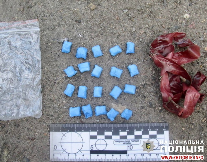 «11 серпня оперативники кримінальної поліції Бердичівського райвідділу помітили чоловіка, який ніби щось шукав у заростях неподалік приватного будинку. Побачивши поліцейських, він явно занервував. А під час поверхневого огляду у його кишені виявили 20 згортків з порошкоподібною речовиною. Попередньо, вмістом пакунків є психотропний засіб, призначений для розповсюдження через так звані закладки. Усі обставини задокументували працівники слідчо-оперативної групи. Вилучене наразі направлено на експертне дослідження», - йдеться у повідомленні.