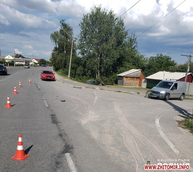 «Дорожньо-транспортна пригода сталася 12 серпня близько 14:10 на автошляху Житомир – Чернівці, у с. Тетерівці. Попередньо встановлено, що 65-річний місцевий житель, керуючи автомобілем «Ford Transit», на перехресті допустив зіткнення з автівкою «Mazda» під керуванням 33-річного жителя Київщини. Унаслідок цього останній автомобіль з’їхав у кювет та перекинувся. Троє його пасажирів, жителі м. Білої Церкви, 32-річна жінка, та двоє чоловіків віком 57 та 42 років, отримали травми. Чоловіків ушпиталено до обласної лікарні», - йдеться у повідомленні.