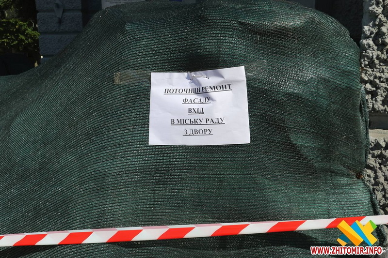 Тимчасово вхід до міської ради перенесено. Зайти у приміщення можна з двору.