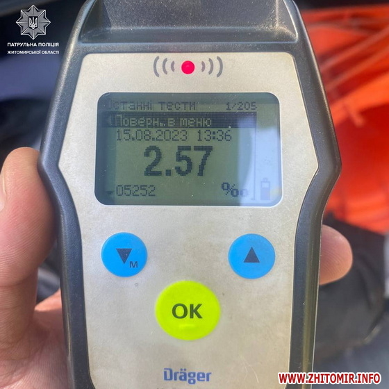 Як повідомляв Житомир.info, 3 липня 2023 року на одному із блокпостів Житомирської області зупинили водія, у якого рівень алкоголю перевищив допустиму норму у 15 разів.