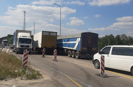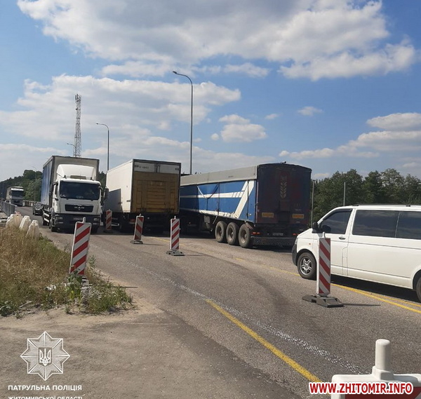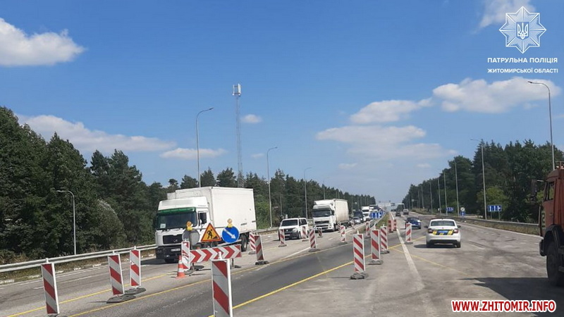 «На 91 км автодороги Київ — Чоп, поблизу села Царівка Житомирської області, у місці проведення ремонтних робіт на шляхопроводі вийшов з ладу вантажний транспортний засіб, внаслідок чого частково перекрито дорогу. На вказаному відрізку шляху рух частково ускладнено в напрямку міста Житомира. Патрульні забезпечують безпеку, регулювання дорожнього руху, також виживаються заходи для найшвидшого усунення ускладнення в русі», - йдеться в повідомленні.