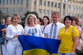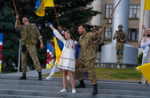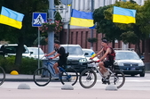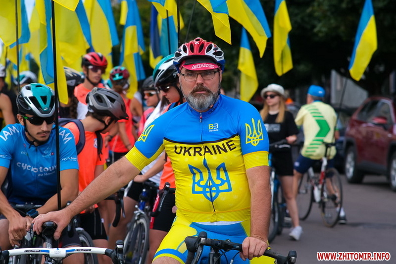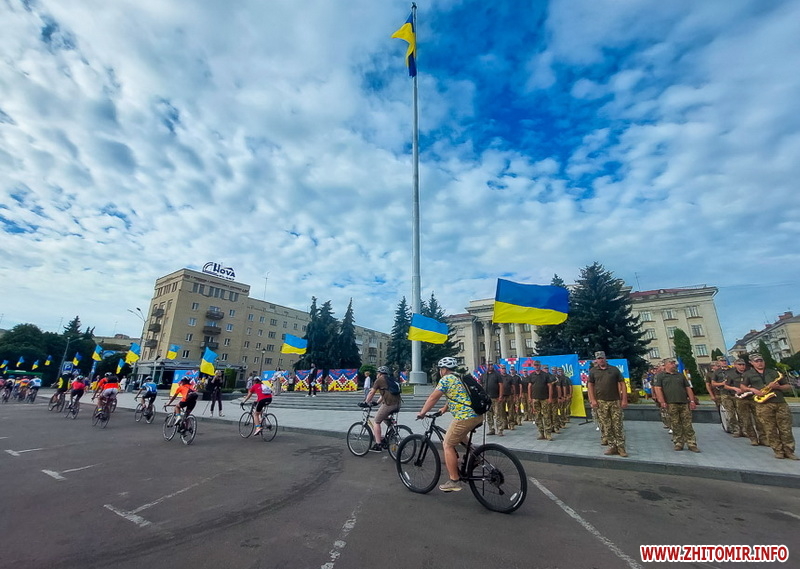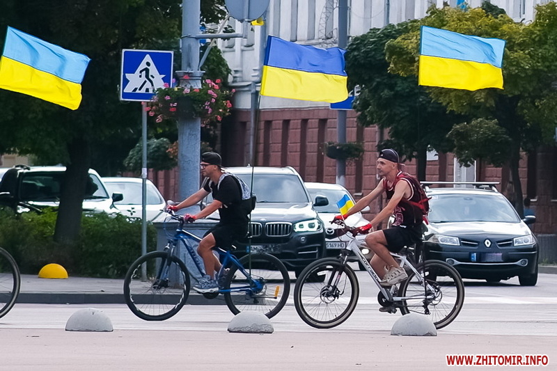 Вже традиційним для відзначення цього дня став патріотичний велопробіг - десятки велосипедистів проїхалися вулицями міста з жовто-блакитними прапорами.