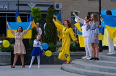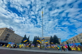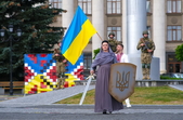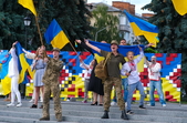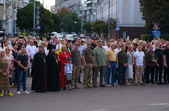 Представники влади та громадськість хвилиною мовчання вшанували загиблих у війні з росією. Урочисте підняття жовто-блакитного прапора на 50-метрову висоту відбулося під час виконання гімну України оркестром.