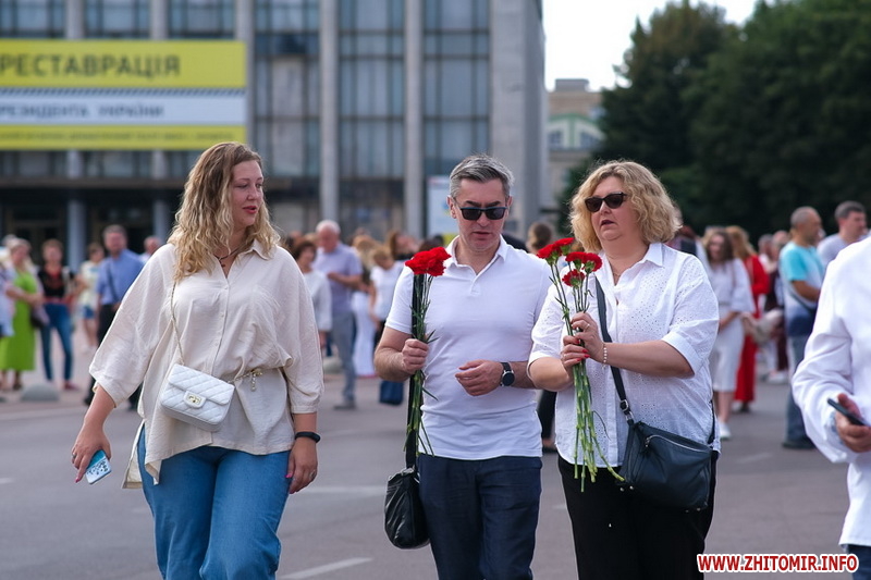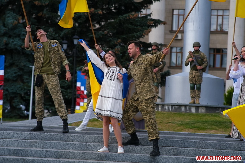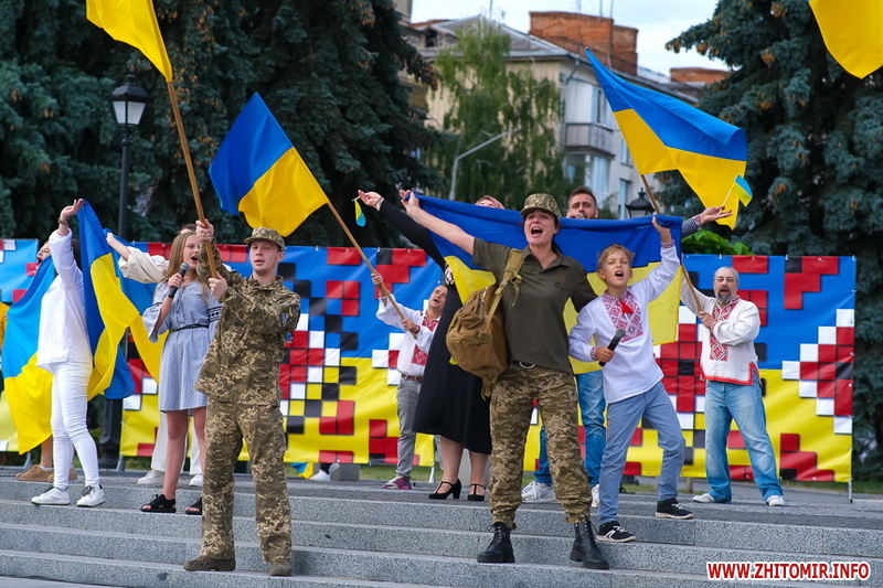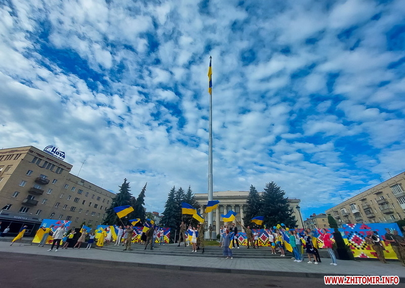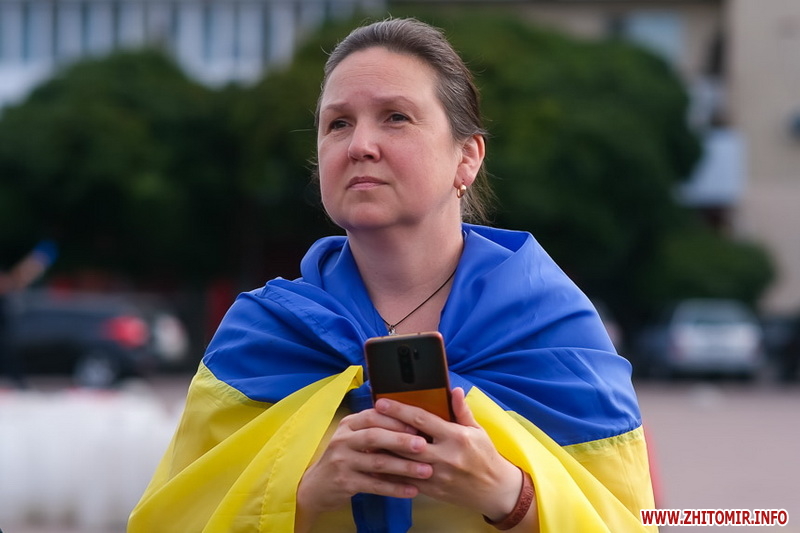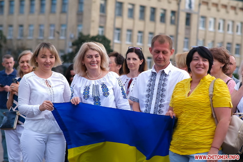 Зранку 23 серпня на майдані Соборному у Житомирі зібралося кілька сотень людей, щоб відзначити День Державного Прапора України.