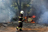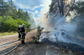 «Ще до приїзду рятувальників очевидці витягнули з автомобіля водійку. Прибули за викликом медики встановили, що внаслідок пожежі водійка отримала опіки тулубу та верхніх кінцівок. Каретою швидкої допомоги її госпіталізовано до лікарні. Пожежу ліквідовано за 40 хвилин. Вогонь встиг знищити автомобіль та суху рослинність на площі 30 кв. м», - про це повідомляє головне управління ДСНС України у Житомирській області.