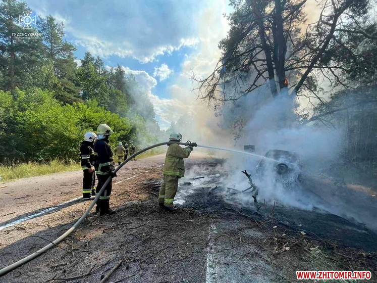 Як повідомляв Житомир.info, 2 липня 2023 року у селі Покалів Житомирської області автомобіль злетів з траси й загорівся, травмованого водія встигли врятувати.