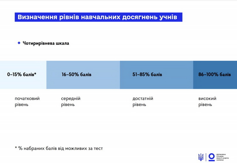 Для оцінювання результатів учнів використовували шкалу з 4 рівнів: