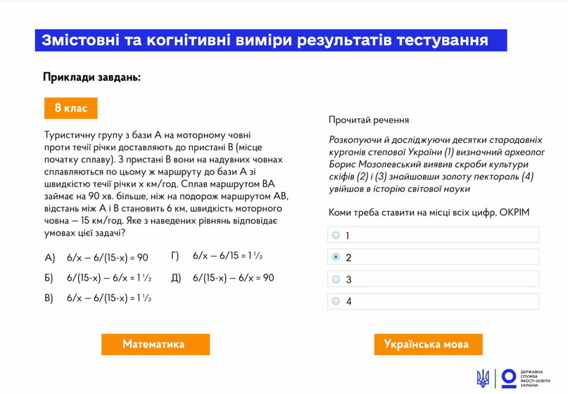 «Частина учнів виконувала тести на платформі ВШО зі школи, частина онлайн, приєднувалися учні навіть з-за кордону та з тимчасово окупованих територій. Завдання розроблялися на основі Держстандарту базової і повної загальної середньої освіти 2011 року», - йдеться у повідомленні.