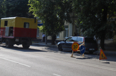 Неподалік майдану Корольова на смузі в напрямку Смолянки, встановлені знаки ремонтних робіт та обмеження швидкості до 30 км на годину.
