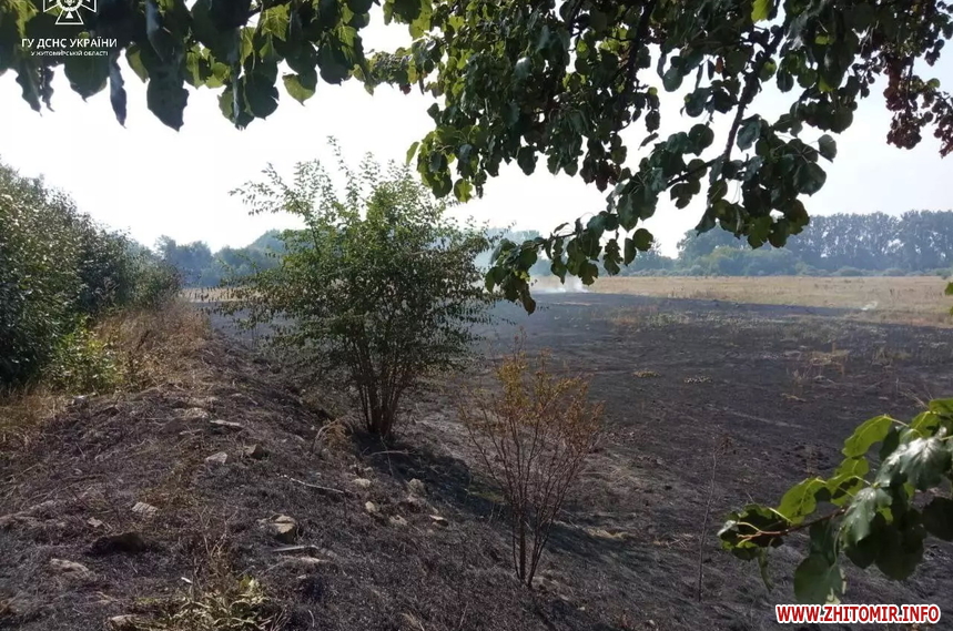Як повідомляв Житомир.info, за добу 18 серпня 2023 року рятувальники ліквідували шість загорянь сухої трави, що виникли у Житомирському, Звягельському та Коростенському районах. Вогнем було пройдено 2,5 га території. Внаслідок однієї з пожеж зайнялася господарча будівля.