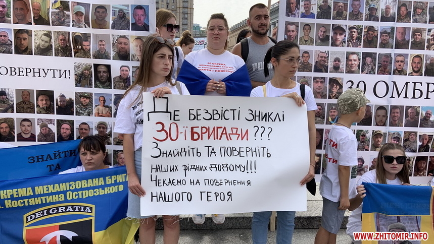 На фото з акції є плакати про зниклих та полонених бійців 30-ї бригади з Житомирської області та інших бригад ЗСУ: 58-ї, 53-ї, 25-ї, 56-ї, 28-ї.