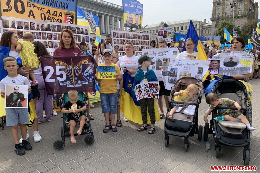«На Майдані Незалежності зібрались родини військових з декількох бригад. Вони тримають фотографії своїх близьких, плакати та скандують: «Поверніть наших героїв». Одна з учасниць акції Марічка розповідає, що в неї безвісти зник тато. Він воював в АТО. Після повномасштабного вторгнення зібрався посеред ночі та пішов на війну. Згодом зник під Ротами на Донеччині. У чоловіка залишилися четверо дітей, наймолодшому – 8 років», - пише видання.
