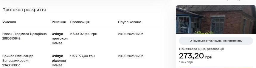 Нагадаємо, початкова ціна нерухомості в центрі селища становила 273 грн 20 коп.