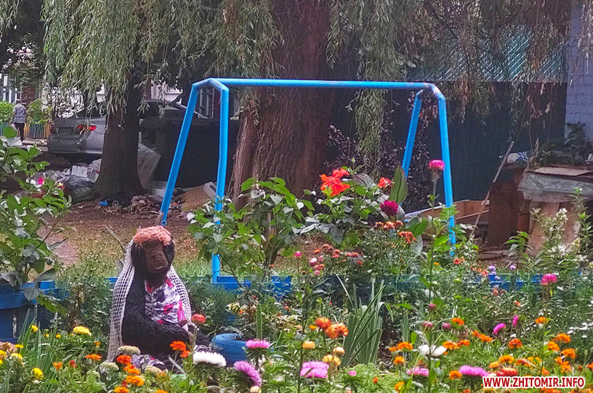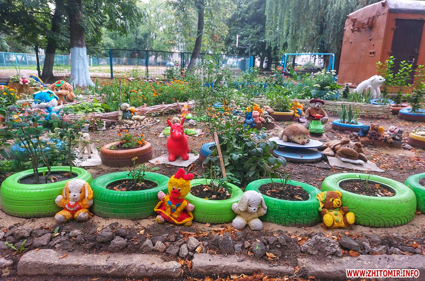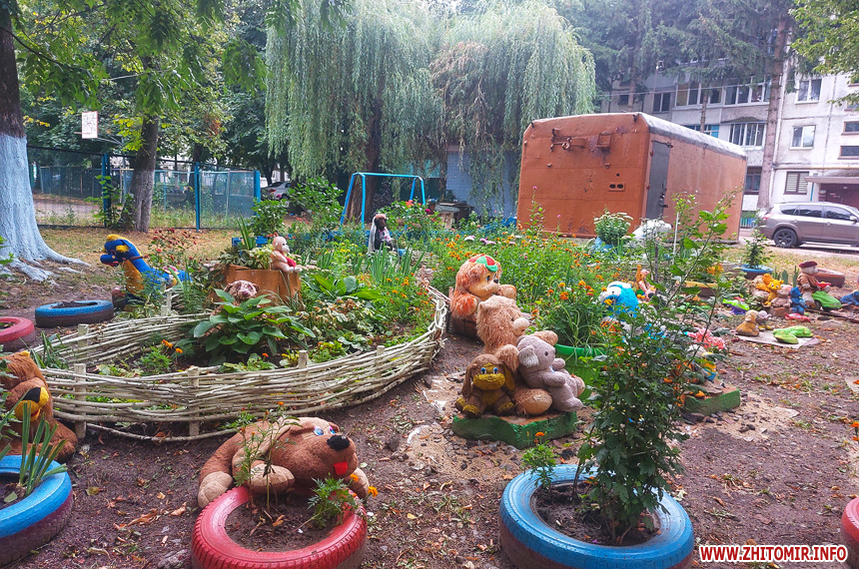 В Житомирі містяни досить часто прикрашають двори своїх багатоповерхівок. Хтось плекає барвисті клумби, що змінюють кольори щосезону, в інших дворах досі популярний так званий «жек-арт» – фігурки та композиції зі старих шин та пластикових відходів. Конкуренцію їм складають «пухнасті» клумби.