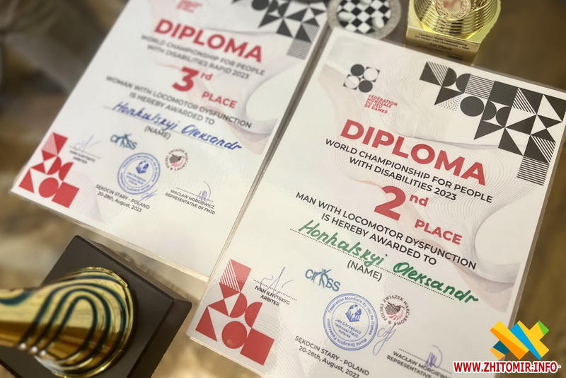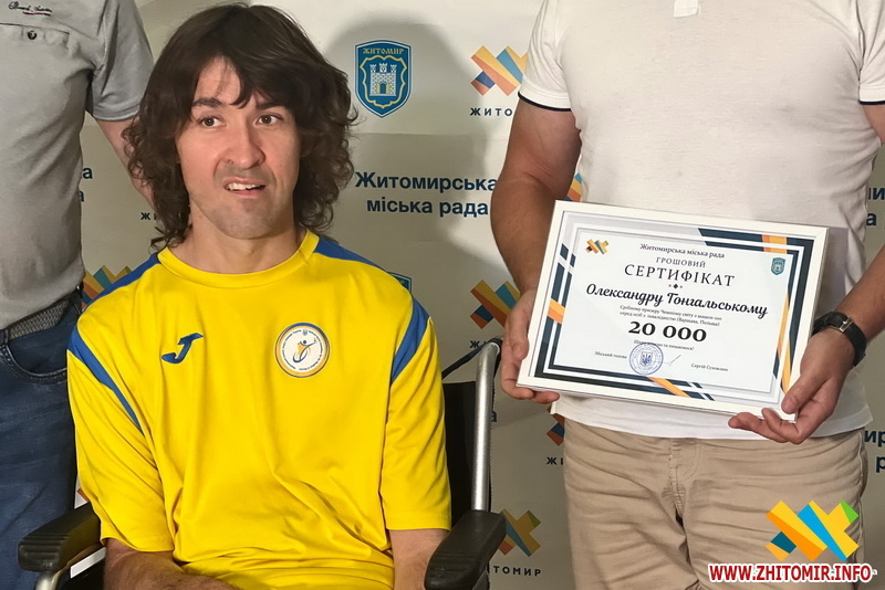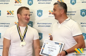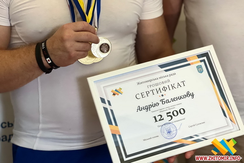 У Житомирі 31 серпня чемпіону Європи з жиму штанги Андрію Баленкову та чемпіону світу з шашок Олександру Гонгальському вручили грошові сертифікати.