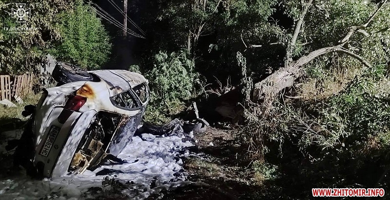 «2 вересня о 03:45 надійшло повідомлення від поліції про те, що у Житомирі легковий автомобіль BMW врізався в електроопору та дерево, а потім перекинувся на бік у кювет. У результаті чого виникло загоряння автомобіля», – йдеться у повідомленні.
