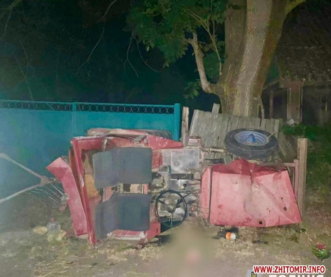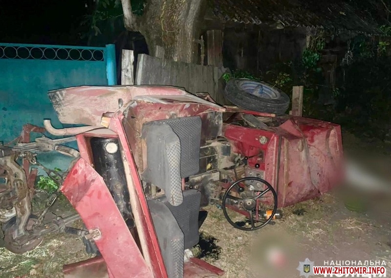 Увечері 1 вересня в селі Левків Глибочицької громади Житомирського району перекинувся трактор: один чоловік загинув, другий – травмований. Поліцейські Житомирського райуправління встановлюють всі обставини події.