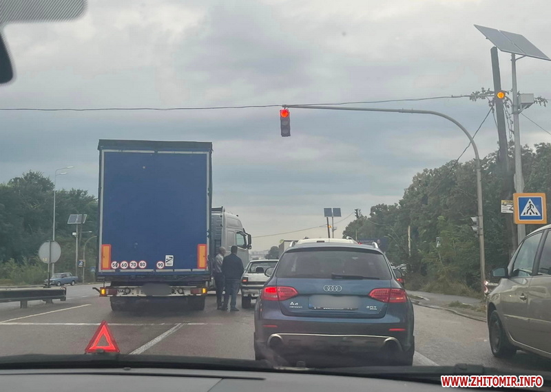 Зранку 4 вересня близько 8 години на перехресті біля повороту на Зарічани зіткнулися фура та легковик, ускладнений рух у бік Житомира.