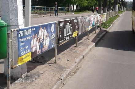 У Житомирі після кількарічної перерви знову почали з’являтися рекламні банери на турнікетах вздовж доріг, хоча такий вид реклами в місті заборонений.