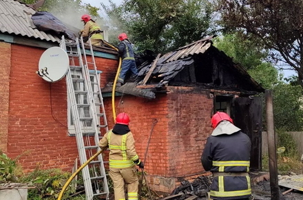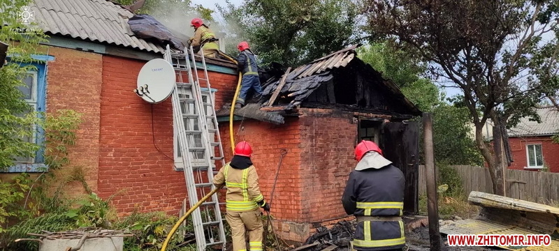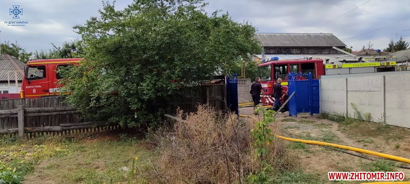 «13 вересня о 13:14 до Служби порятунку “101” надійшло повідомлення про пожежу у житловому будинку на чотирьох господарів в м. Коростень. Про це рятувальників сповістила господарка, яка опинилася у вогняній пастці через те, що горіли вхідні двері будинку. По прибуттю вогнеборців до місця виклику полум'я охопило дерев'яну прибудову та поширилося на покрівлю житлового будинку. Рятувальники прибили вогонь та допомогли 59-річній жінці вийти на свіже повітря. Вони викликали медиків, які оглянули жінку. Від госпіталізації вона відмовилася. Силами двох відділень пожежно-рятувального підрозділу о 13:25 пожежу вдалося локалізувати, а о 13:47 ліквідувати. Вогнем знищено прибудову, покрівлю оселі на площі 12 кв. м та суху рослинність на площі 5 кв. м. Подальшого розповсюдження вогню рятувальники не допустили. Ймовірно, на подвір'ї розводили багаття, від якого зайнялася суха трава та дерев'яна прибудова. Остаточна причина надзвичайної події встановлюються фахівцями», - йдеться в повідомленні.