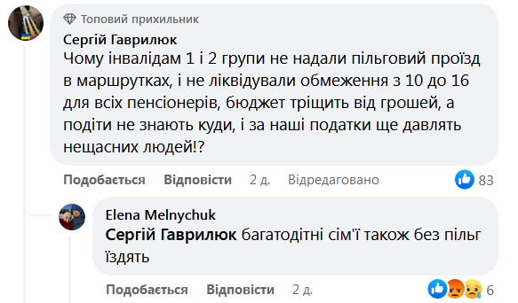 «Чому людям із інвалідністю 1 та 2 груп не додали пільговий проїзд у маршрутках і не ліквідували обмеження з 10 до 16 години для всіх пенсіонерів?», - так звучало в ефірі питання.