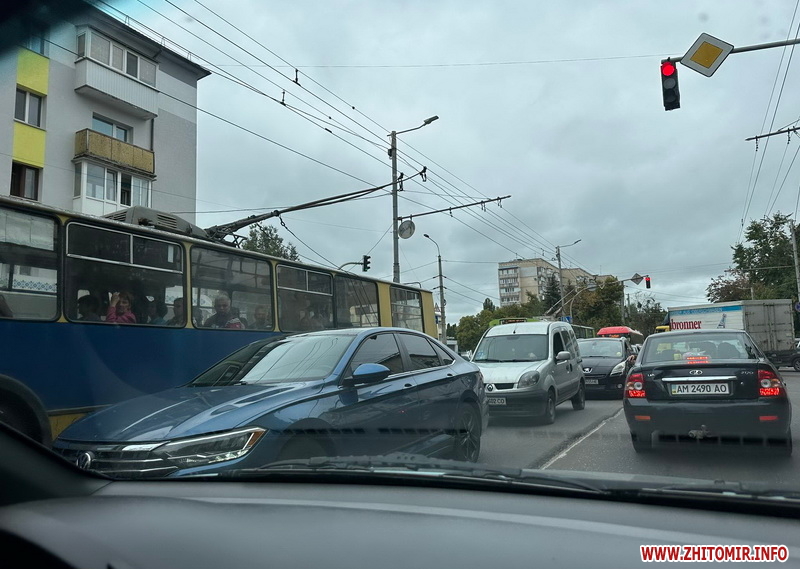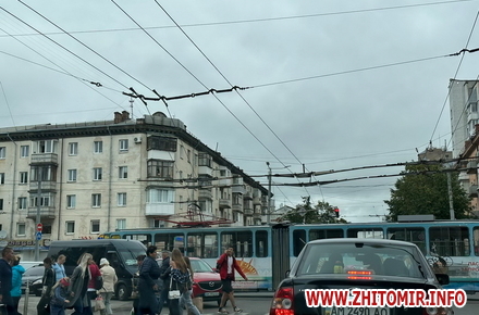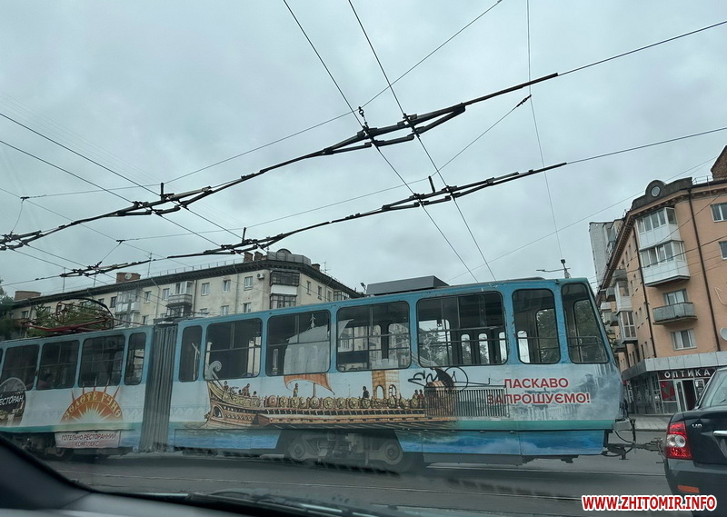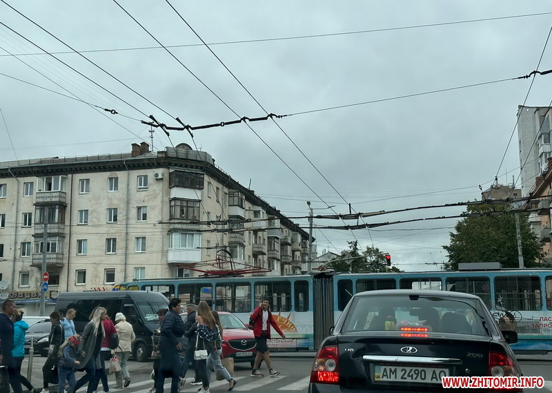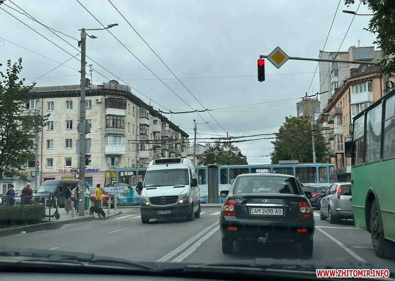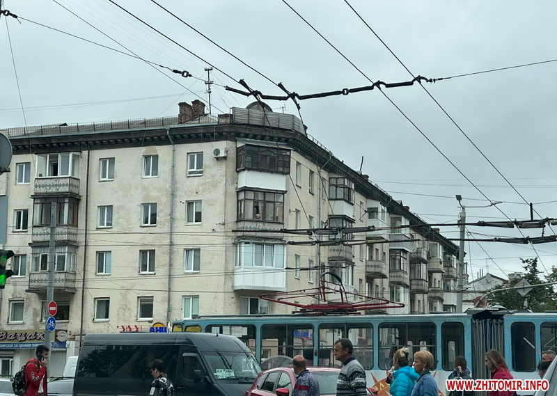 У Житомирі на перехресті вулиць Київська та Небесна Сотня 15 вересня близько 14:30 посеред дороги зупинився трамвай, рух транспорту ускладнений.