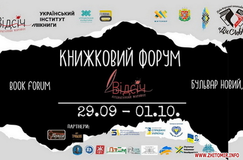 У Житомирі біля обласної універсальної наукової бібліотеки ім.О. Ольжича на Новому бульварі 29 вересня розпочався книжковий форум «Відсіч.ДієСлово». Він триватиме по 1 жовтня 2023 року.