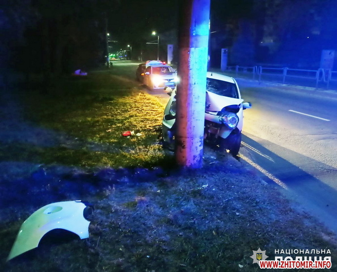 Також вночі 1 жовтня сталась ще одна автопригода. У Житомирі водійка здійснила зіткнення з бетонною опорою лінії електропередач.