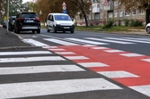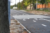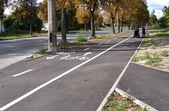 На вулиці Ціолковського нанесли розмітку з велосмугою на проїзній частині. Станом на 2 жовтня дорожніх знаків на ділянці немає, натомість на велосмузі є припарковані автомобілі.