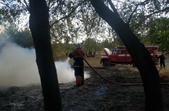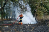 «Зокрема, 3 жовтня о 14:40 до Служби порятунку “101” надійшло повідомлення про загоряння сухої рослинності на закинутій відкритій території у Коростені. По прибуттю рятувальників до місця виклику з'ясувалося, що горить суха трава та кущі на площі 2,5 га. Недалеко від осередку пожежі були розташовані житлові будинки. Боротьбу з вогнем ускладнювала суха, вітряна погода та висота трави. Для підвозу води викликали додаткове відділення рятувальників. Довелося підвозити воду 5 разів з озера, що розташоване на відстані 1,5 км. Силами бійців ДСНС та селян о 15:00 пожежу вдалося локалізувати, а о 18:20 ліквідувати. Вони не допустили розповсюдження полум’я на будинки. Під час гасіння зазначеної пожежі з іншого боку від осередку також зайнялася суха трава на площі 2 га. Загоряння ліквідувало третє відділення вогнеборців за півтори години», - йдеться в повідомленні.